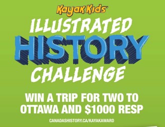 • Don’t forget about the Kayak Kids’ Illustrated History Challenge! Students between 7 and 14 years of age are invited to create their own illustrated story based on a moment in Canada’s history.